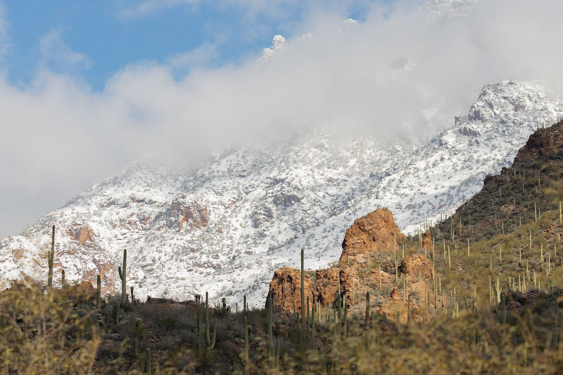 Snow fall in the Tucson Mountains.